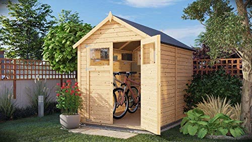 Das Alpholz Gerätehaus Alisha aus Fichten-Holz bietet Ihnen einen praktischen und attraktiven Stauraum für Ihre Gartengeräte und -utensilien. Mit einer Wandstärke von 14mm ist das Holzhaus stabil und langlebig, ideal für die Aufbewahrung Ihrer Gartenwerkzeuge oder als gemütlicher Rückzugsort im Grünen. Das Satteldach verleiht dem Geräteschuppen zudem eine ansprechende Optik.