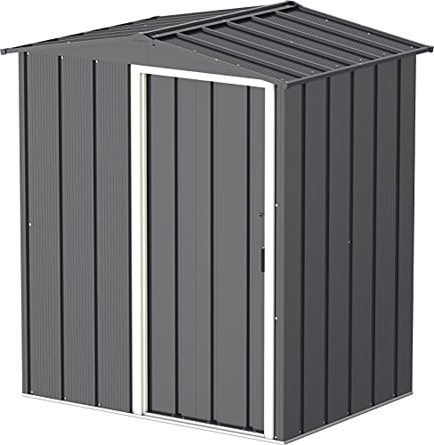 Das wetterfeste Metallgerätehaus überzeugt durch eine verstärkte Dachkonstruktion und ist ideal für die sichere Lagerung im Freien.