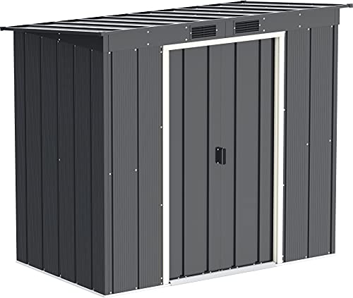 Das wetterfeste Metallgerätehaus überzeugt durch eine verstärkte Dachkonstruktion und ist ideal für die sichere Lagerung im Freien.