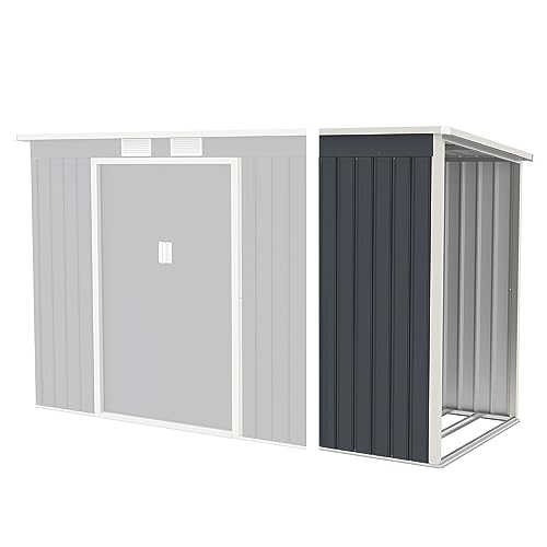 Thanaddo Metall Gerätehaus 311x123x181 cm wetterfest mit Holzunterstand und Lüftungsgitter, grau