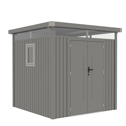 Rockford Lagos 100 Metall Gartenhaus - Gerätehaus mit Polycarbonat-FensterDoppeltür - 230x230x222cm - Grau