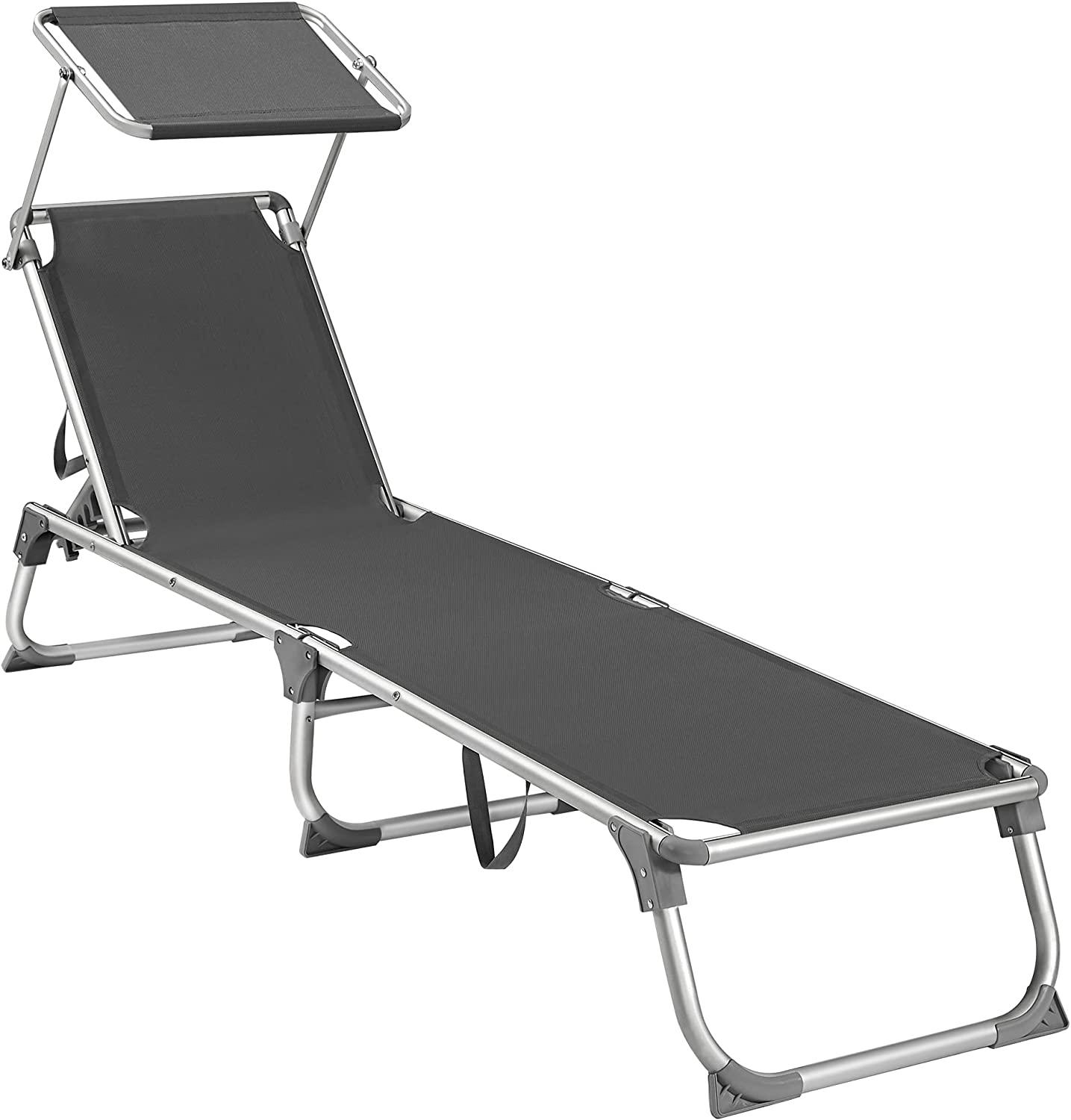 | Name | SONGMICS Sonnenliege, klappbarer Liegestuhl, 193 x 55 x 31 cm, max. Belastbarkeit 150 kg, mit Sonnenschutz, Rauchgrau |