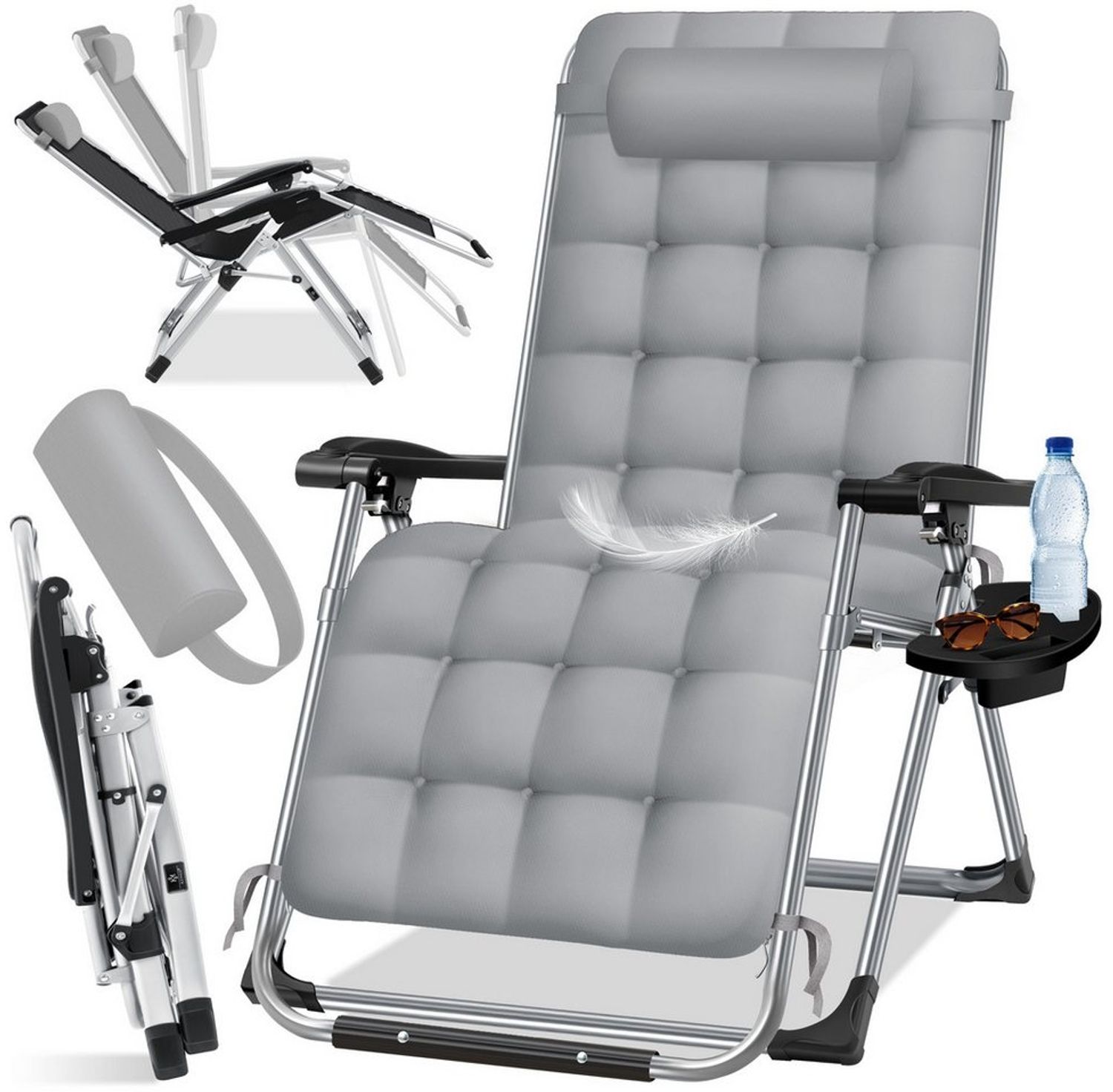 | Name | KESSER® Sonnenliege Liegestuhl Klappbar Mit Getränkehalter Gartenstuhl Mit Auflage Polster, Liegestuhl, Extra groß Gartenliege, Verstellbar Rückenlehne Garten Liege mit Kissen-Unterstützung Grau |