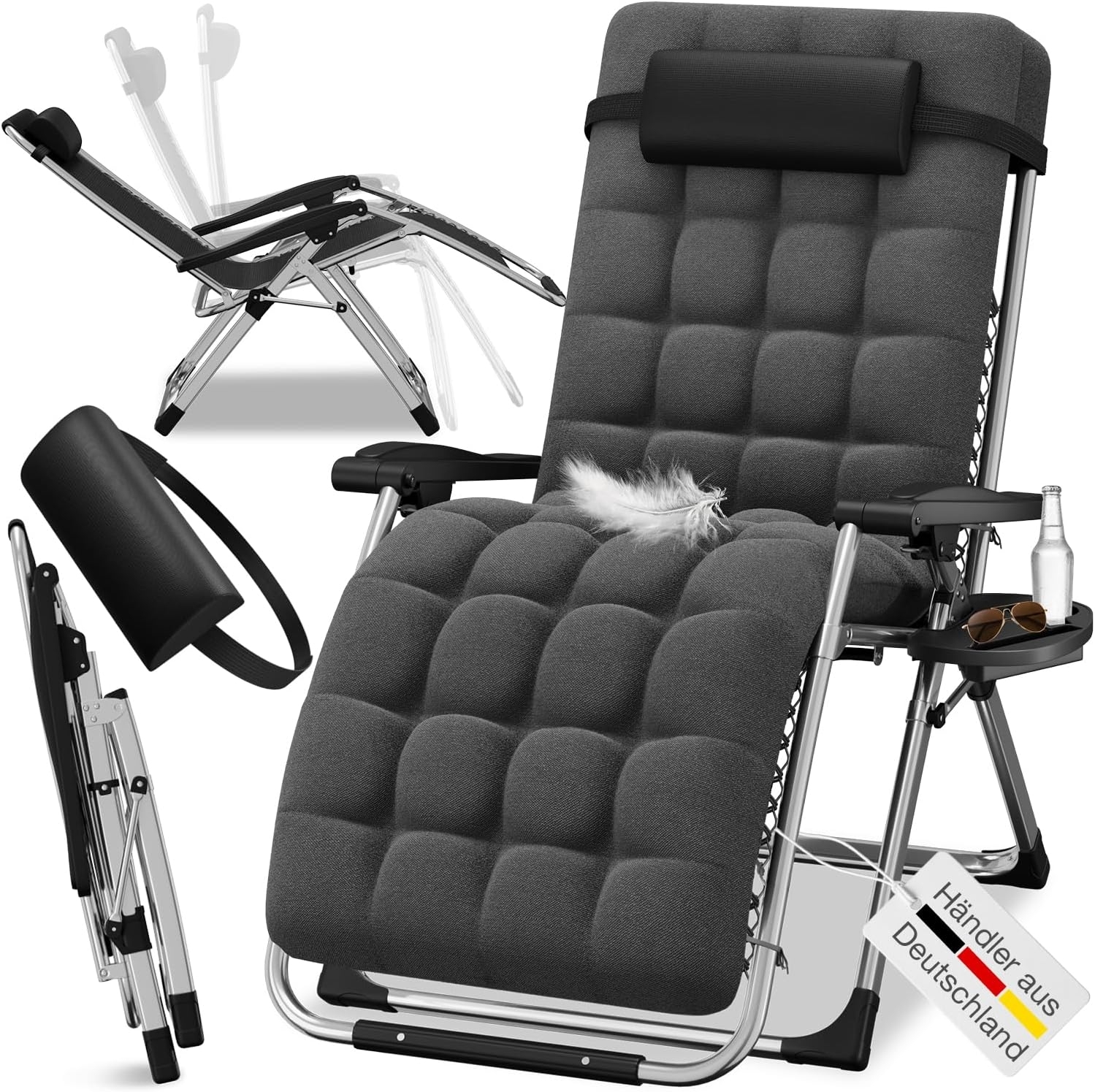 | Name | ELONEO Gartenliege mit extra dicker Auflage inkl. Nackenkissen & Getränkehalter, 1 St, Sonnenliege klappbar, 3-stufig verstellbar, bis 200 kg |