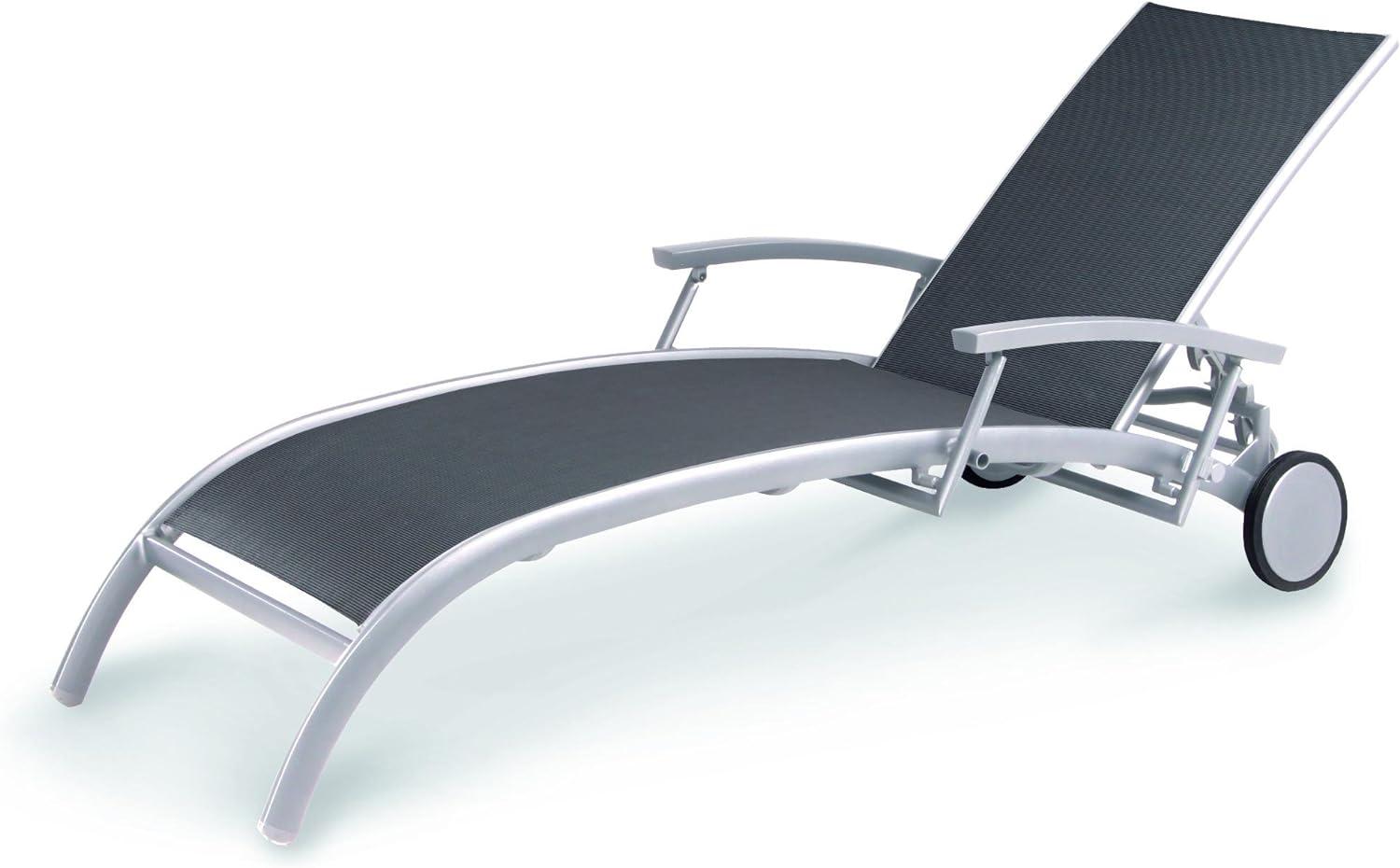 Die Rollliege Palermo in Silber von Best Freizeitmöbel vereint außergewöhnlichen Liegekomfort mit einem ergonomischen Design. Das Gestell sowie die Armlehnen und Gelenkteile bestehen aus korrosions- und witterungsfestem Aluminium. Die atmungsaktive Bespannung aus reißfestem Ergotex-Gewebe sorgt für eine angenehme Liegefläche. Die mehrfach verstellbare Rückenlehne und klappbaren Armlehnen bieten zusätzlichen Komfort. Mit großen Rädern ist die Liege auch auf Rasen leicht zu bewegen. **Highlights** - Außergewöhnlicher Liegekomfort - Korrosions- und witterungsfestes Aluminiumgestell - Ergonomisches Design - Atmungsaktive Bespannung aus reißfestem Ergotex-Gewebe - Mehrfach verstellbare Rückenlehne und klappbare Armlehnen **Produkteigenschaften** - Maße B/T/H: 72 x 202 x 47 cm - Liegehöhe: 35 cm - Liegefläche: 54 x 192 cm - Höhe Armlehnen: 47 cm - Höhe Rückenlehne: 77 cm - Material Bespannung: Ergotex-Gewebe - Farbe Bespannung: Anthrazit - Material Gestell: Aluminium - Farbe Gestell: Silber - Gewicht: 9,8 kg - Anzahl der Rollen: 2 Rollen - Montageart bei Lieferung: komplett montiert **Lieferumfang** - Rollliege Palermo in Silber - Keine weiteren Produkte im Lieferumfang enthalten