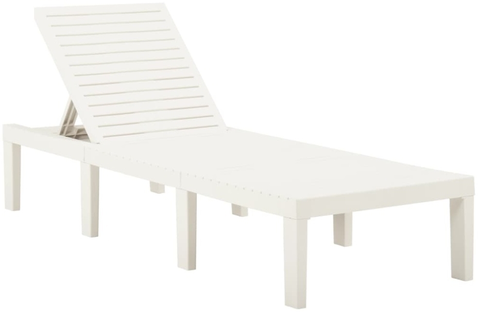 Mit der vidaXL Sonnenliege aus Kunststoff in Weiß genießen Sie entspannte Stunden im Freien. Die Liege ist leicht zu reinigen und bietet eine verstellbare Rückenlehne, die in 5 Positionen neigbar ist, sodass Sie stets die optimale Position finden. Dank des leichten Designs lässt sich die Liege mühelos umstellen. **Highlights** - Bequeme Sonnenliege für den Außenbereich - Leicht zu reinigender Kunststoff - Verstellbare Rückenlehne für individuellen Komfort - Leichtes Design für einfaches Umstellen **Produkteigenschaften** - Farbe: Weiß - Material: Kunststoff - Abmessungen: 195 x 65 x 32 cm (B x T x H) - Rückenlehne in 5 Positionen neigbar - Keine Montage nötig **Lieferumfang** - 1x Sonnenliege - Kissen nicht inbegriffen