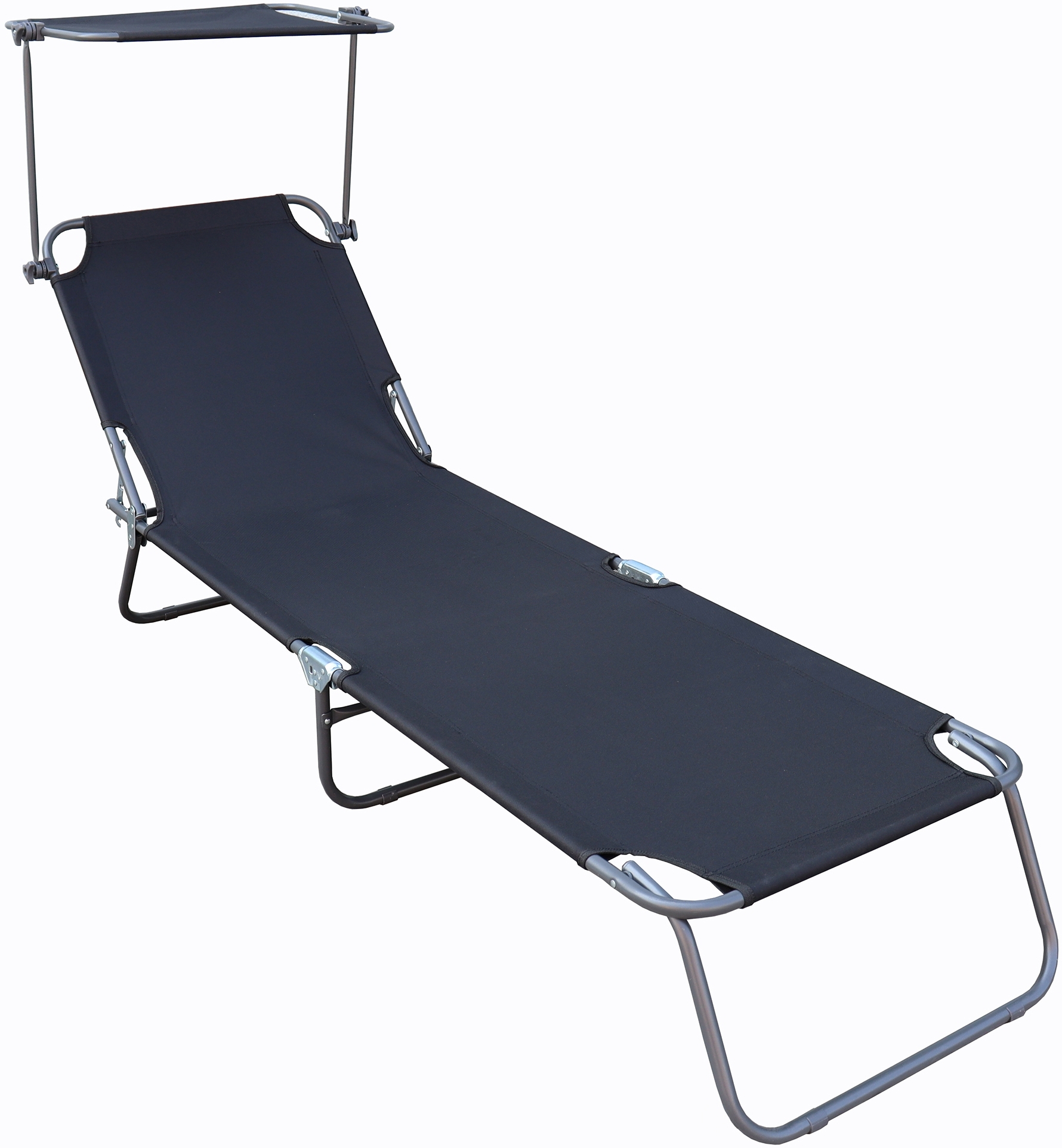 Eine wunderschöne Gartenliege für entspannte Stunden im Garten, auf der Terrasse oder am Pool. Die Liegefläche ist mit pflegeleichtem, reißfestem und robustem Textilene bezogen. Das stufenlos verstellbare Sonnendach sorgt dafür, dass Sie immer im Schatten liegen können. Diese klappbare Liege ist ideal für den ganzjährigen Einsatz und lässt sich platzsparend verstauen. **Highlights** - Maße Liegestuhl ca. L. 185 x H. 24 x B. 55 cm - Stufenlos verstellbares Sonnendach - Sehr bequeme Liegefläche aus Textilene **Produkteigenschaften** - Pflegeleichter und robuster Textilene-Bezug - Klappbar für einfachen Transport und platzsparende Lagerung - Ideal für Garten, Terrasse und Poolbereich