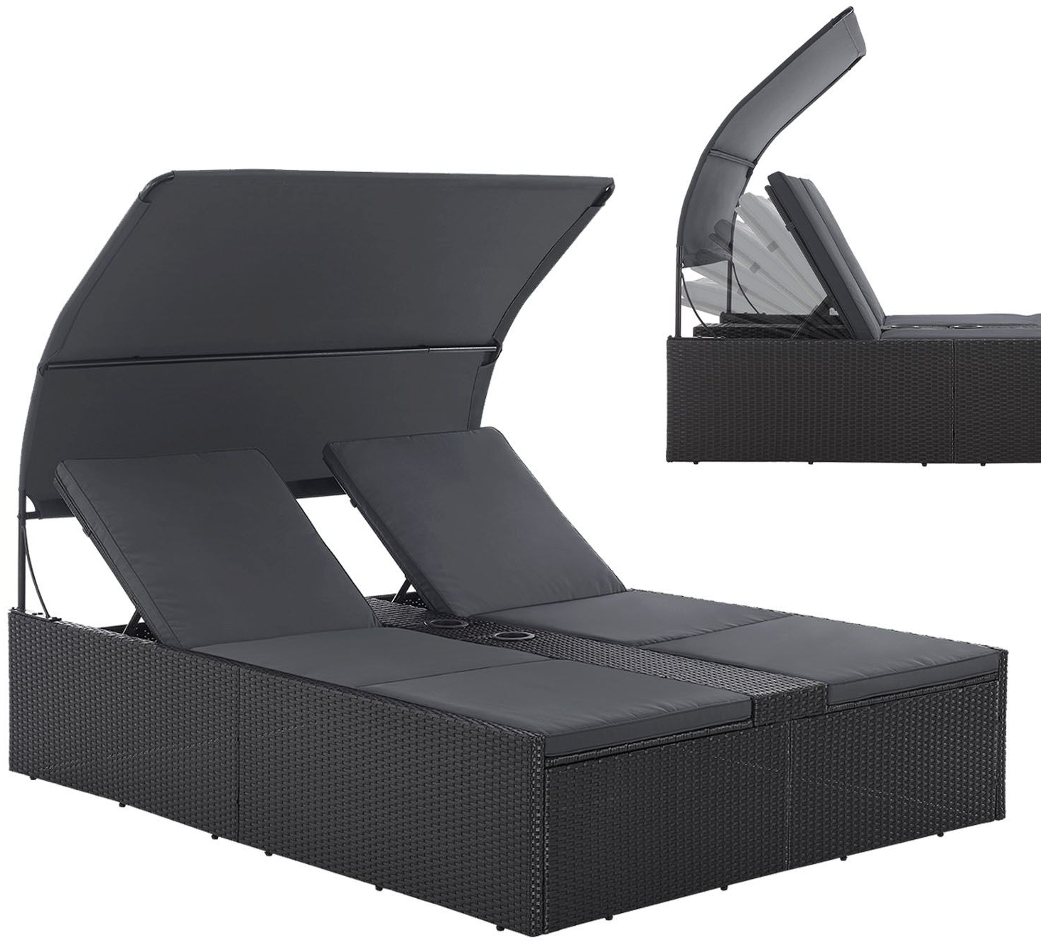 | Name | Juskys Polyrattan Doppelliege Syros - Garten Sonnenliege für 2 Personen - Outdoor Liege mit Dach & Auflagen - Kopfteil verstellbar - Schwarz |