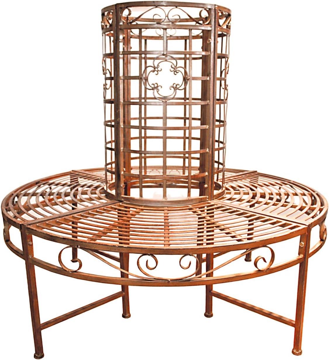 ### Baumbank Larissa im Überblick * Material: Stahl * Farbe: Rost-Bronze Optik * Außenmaß: Ø 121 cm * Innenmaß: Ø 43,5 cm * Sitzhöhe: ca. 44,5 cm * Sitztiefe: ca. 37 cm * Höhe Rückenlehne: ca. 112 cm * Belastbarkeit: 150 kg * Gewicht: 18,8 kg