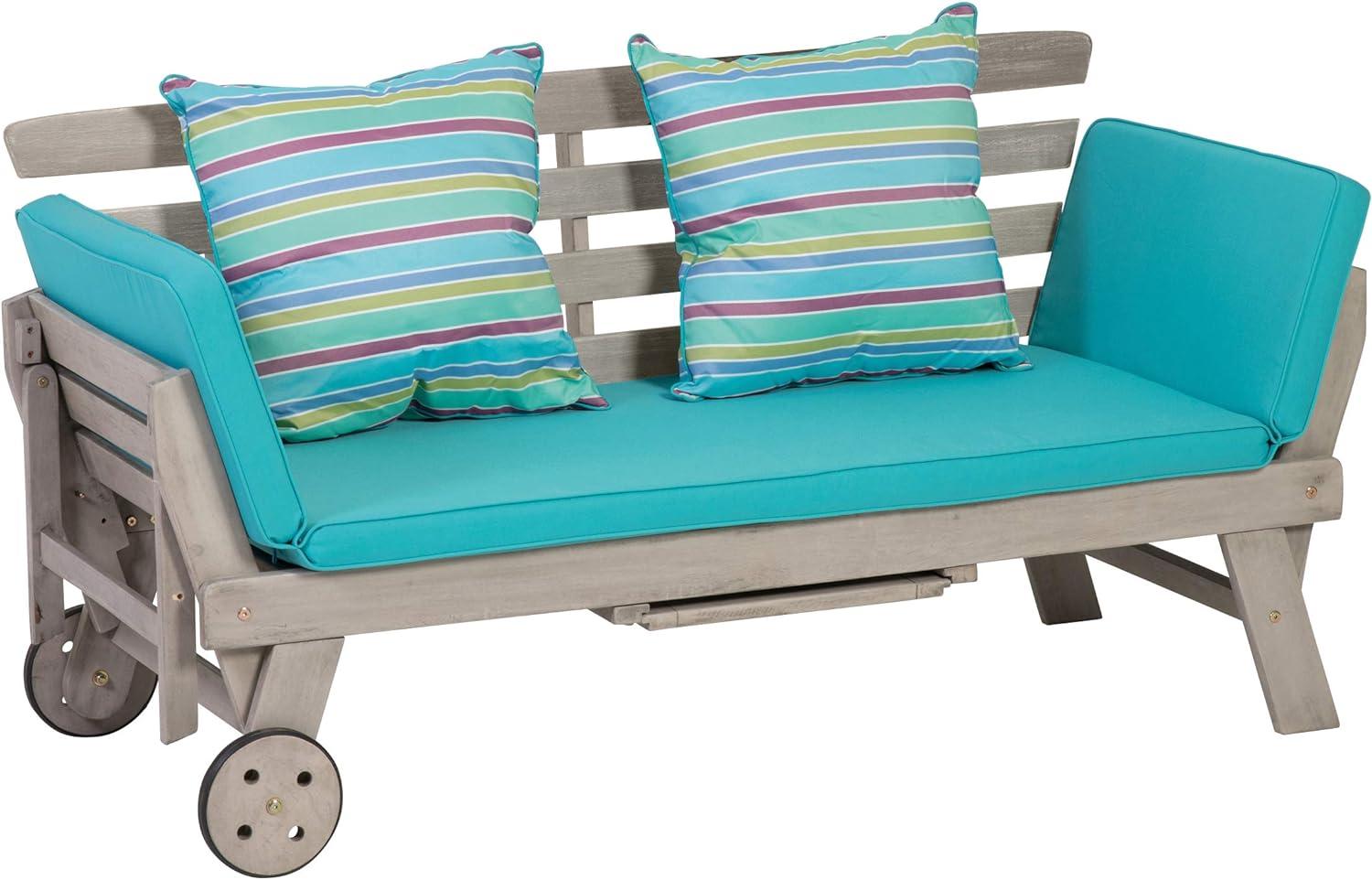 | Name | greemotion Multifunktionsbank Maui aus Akazienholz FSC® 100%, Holzbank mit Rollen und klappbaren Armlehnen, Gartenbank als Liege oder Bank nutzbar |