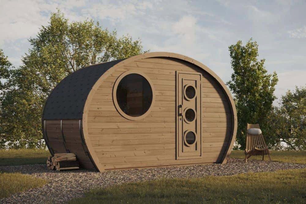 • Die FinnTherm Fasssauna Hobbit XS mit einer Wandstärke von 42 mm bietet Platz für bis zu vier Personen und passt ideal in kleinere Gärten