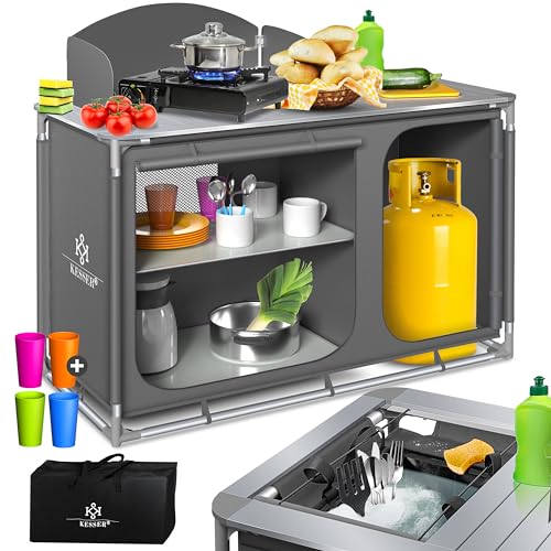 Die Meinungen zur KESSER Campingküche sind gemischt. Einige Kunden sind zufrieden mit der Stabilität und Funktionalität, während andere die Qualität kritisieren.