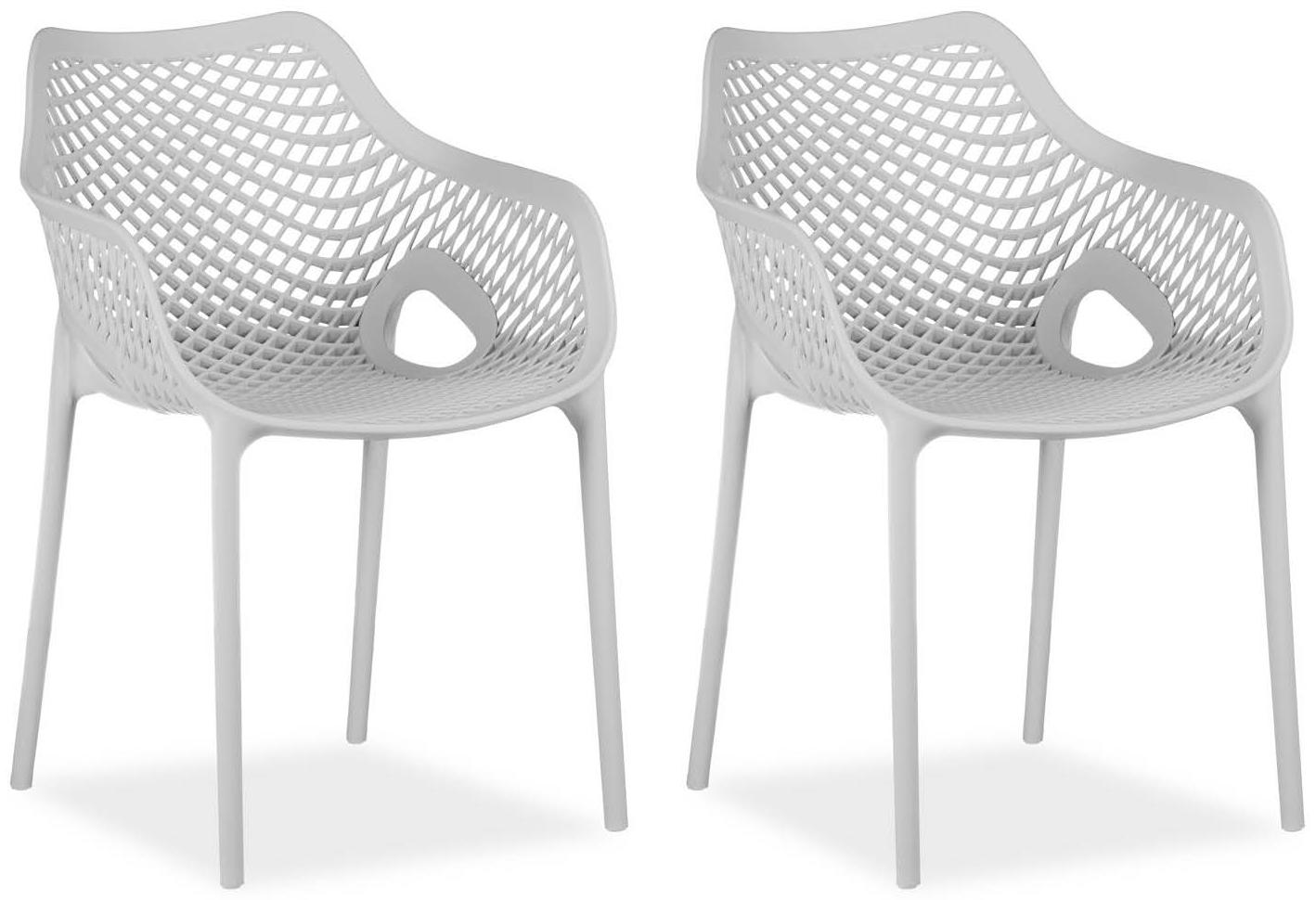 Nehmen Sie Platz und genießen Sie die Natur auf unseren stilvollen, grauen Gartenstühlen. Diese bequemen Gartensessel mit Armlehnen aus massivem Kunststoff sind wetter- und UV-beständig. Sie lassen sich leicht reinigen und sind dank der praktischen Stapelfunktion platzsparend unterzubringen. Ideal für Balkon, Garten oder Terrasse. **Highlights** - Bequemer Gartensessel mit Armlehnen - Wetter- und UV-beständige Oberfläche - Leicht zu reinigen - Stapelbar für platzsparende Unterbringung - Stilvolles Design in hellem Grau **Produkteigenschaften** - Material: Kunststoff (Polypropylen) - Farbe: Grau - Maße je Stuhl: 54,5 x 82 x 61 cm (BxHxT) - Sitzfläche: 52,5 cm breit - Sitzhöhe: 46 cm - Sitztiefe: 45 cm - Rückenlehnenhöhe: 46 cm **Lieferumfang** - 2 Gartenstühle in hellem Grau