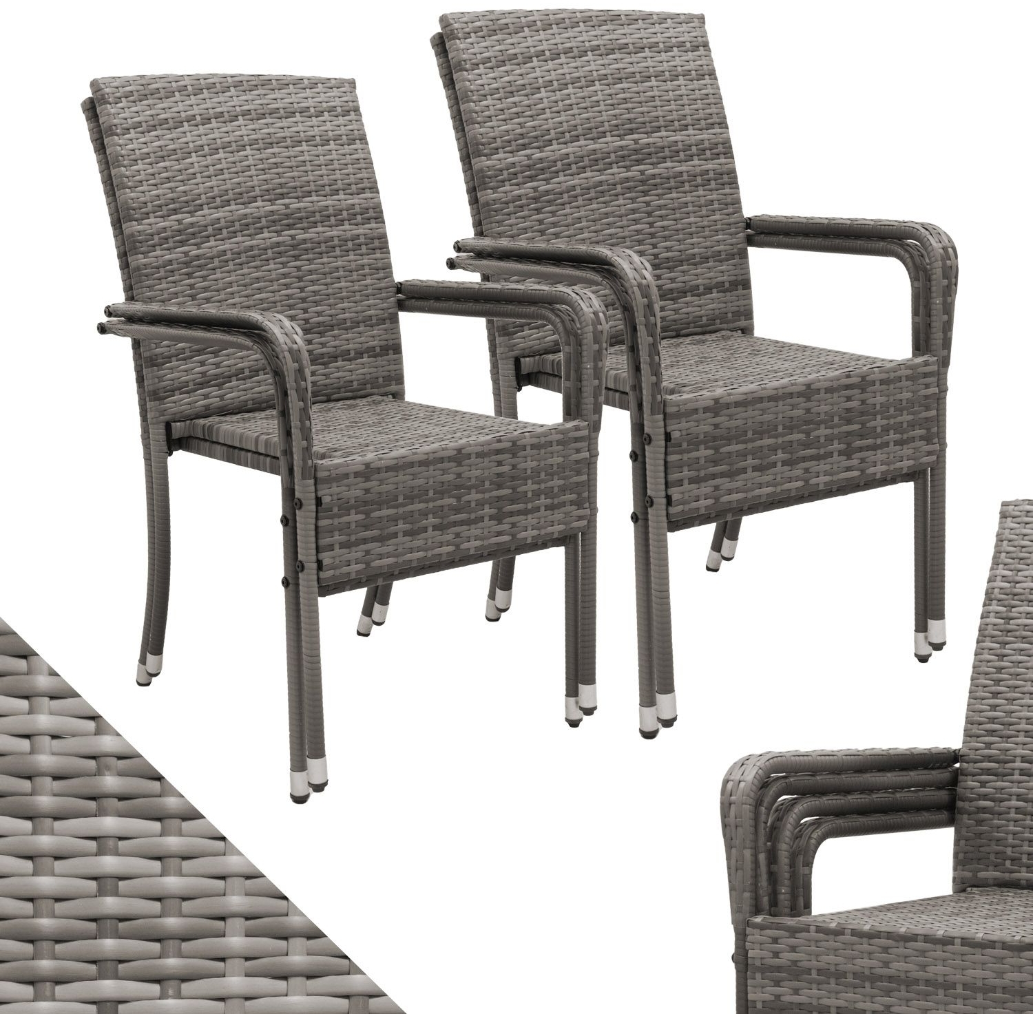 | Name | Juskys Polyrattan Gartenstühle Yoro 4er Set - mit Armlehnen & Rückenlehne - 4 Stühle stapelbar - Rattan Stuhl Garten - Stapelstuhl Grau-meliert |