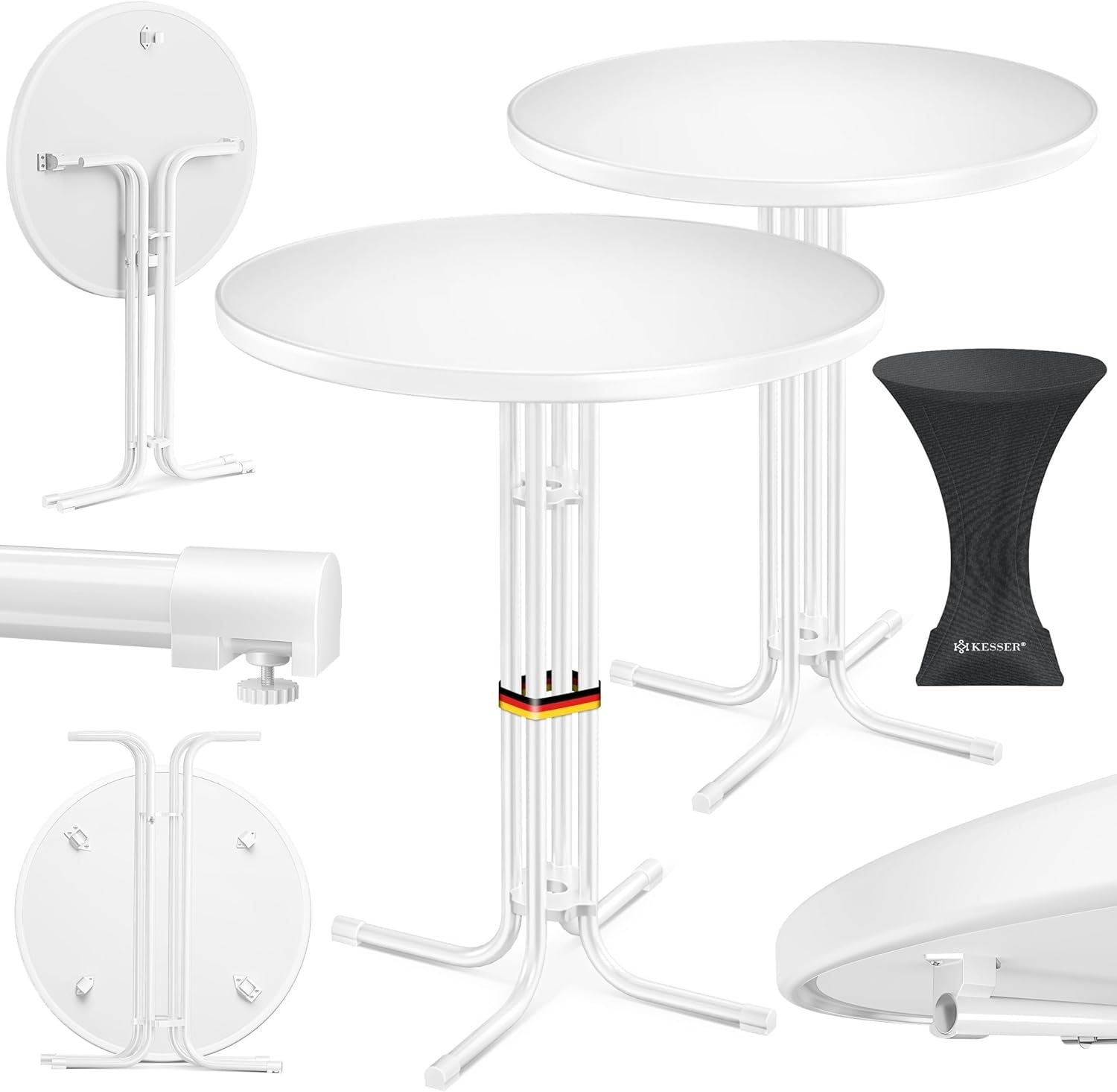 | Name | KESSER® Gastro Stehtisch klappbar - Gastronomie Bistrotisch rund - Wetterbeständiger Klapptisch Gartentisch - Runder Partytisch - Hitzebeständig - Stabil und sicher Weiß, Ø 80 cm, 2er Set |