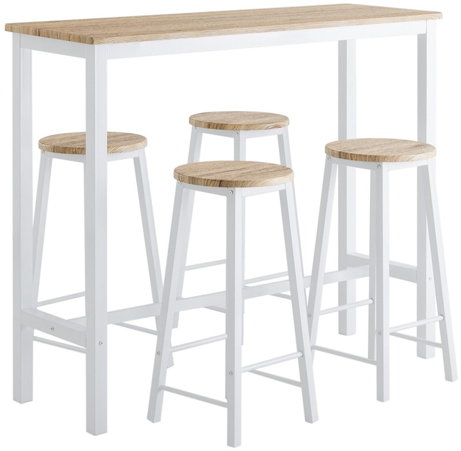 | Name | SoBuy OGT22-WN Bartisch-Set mit 4 Hockern, MDF, PVC-Furnier, Weiß, 120 x 100 x 40 cm |