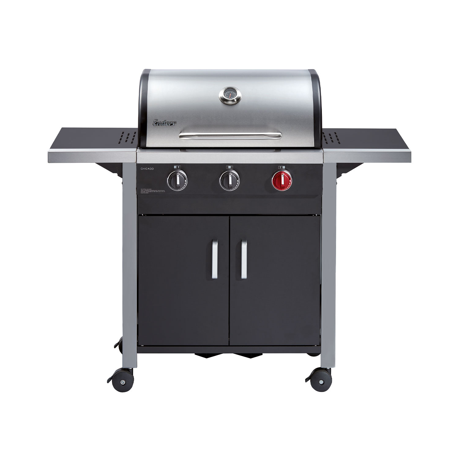 Enders Gasgrill CHICAGO 3 R schwarz silber 2.520 cm² Grillfläche 3 Brenner 2 Seitenablagen 10,4 kW