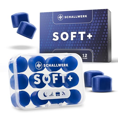 Schallwerk ® Soft+ | 12 Silikon Ohrstöpsel – Optimale Unterstützung als Schlafgehörschutzweiche Ohrenstöpsel zum Schlafen Silikon – Earplugs for sleeping