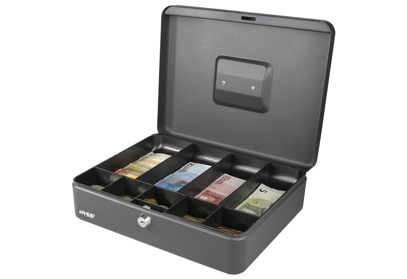 Die HMF Geldkassette 10019 ist eine robuste und gut verarbeitete Kassette, die ausreichend Platz für Scheine und Münzen bietet. Sie hat ein gutes Preis-Leistungs-Verhältnis, jedoch ist die Sicherheit des Schlosses fraglich, da es leicht zu knacken ist. Zudem schließt der Deckel nicht vollständig und der Einsatz könnte stabiler sein.