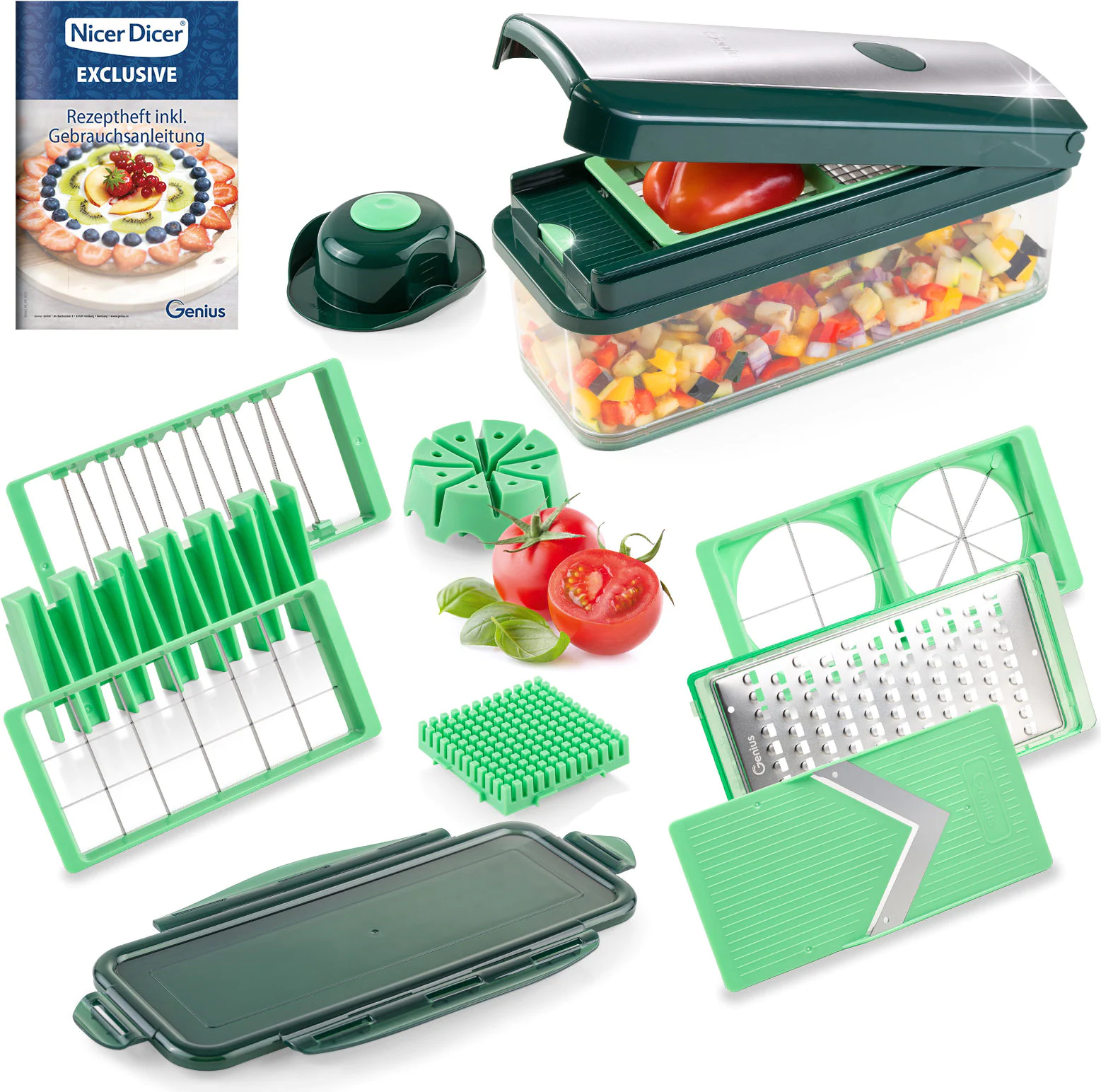 Das Genius Nicer Dicer Exklusive 15-teilige Set erhält gemischte Bewertungen von Kunden. Während einige die Zeitersparnis und die scharfen Klingen loben, klagen andere über Qualitätsprobleme und Schwierigkeiten beim Reinigen.