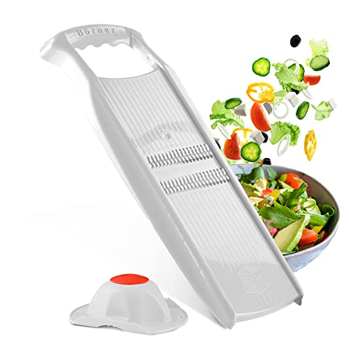 Börner Roko PowerLine Gemüseschneider Set (2-tlg.) • Feiner Streifenschneider für Obst & Gemüse + Fruchthalter • Julienne Schneider • Gemüsehobel • Küchenhobel Set (Weiß)