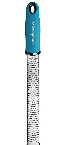 Die Microplane Zester Reibe Fein Türkis Edelstahl aus der Premium Classic Serie für Zitrusfrüchte ist ein hochwertiges Küchenwerkzeug, das Ihnen das mühelose Reiben von Zitrusfrüchten und Hartkäse ermöglicht. Mit ihrer scharfen Klinge reibt sie die Schale sehr fein und intensiv - ohne dabei bittere Bestandteile freizusetzen. Die Handhabung und Reinigung sind einfach, sodass Sie sich auf das Wesentliche konzentrieren können: Das Verfeinern Ihrer Speisen.