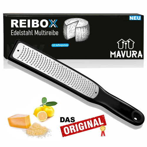 • Die MAVURA REIBOX ist eine hochwertige Mehrzweck-Küchenreibe, die für verschiedene Zubereitungsarten geeignet ist.