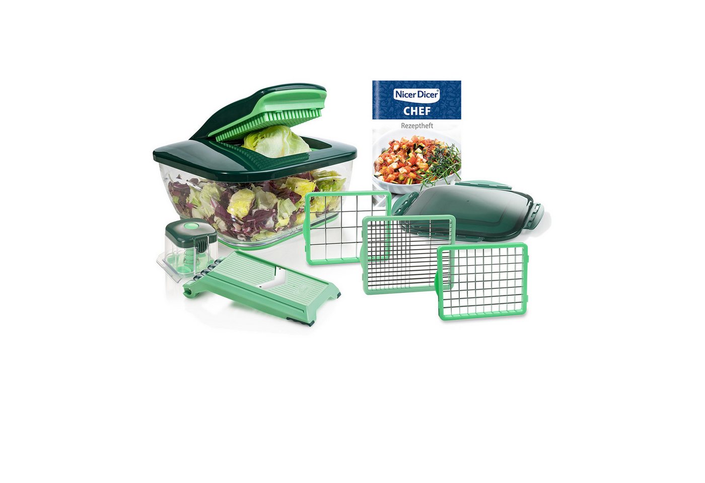 Genius Gemüseschneider Nicer Dicer Chef Gemüsehobel 10.tlgKüchenhelfer mit ultra-scharfen Klingen und verstellbarem Hobel