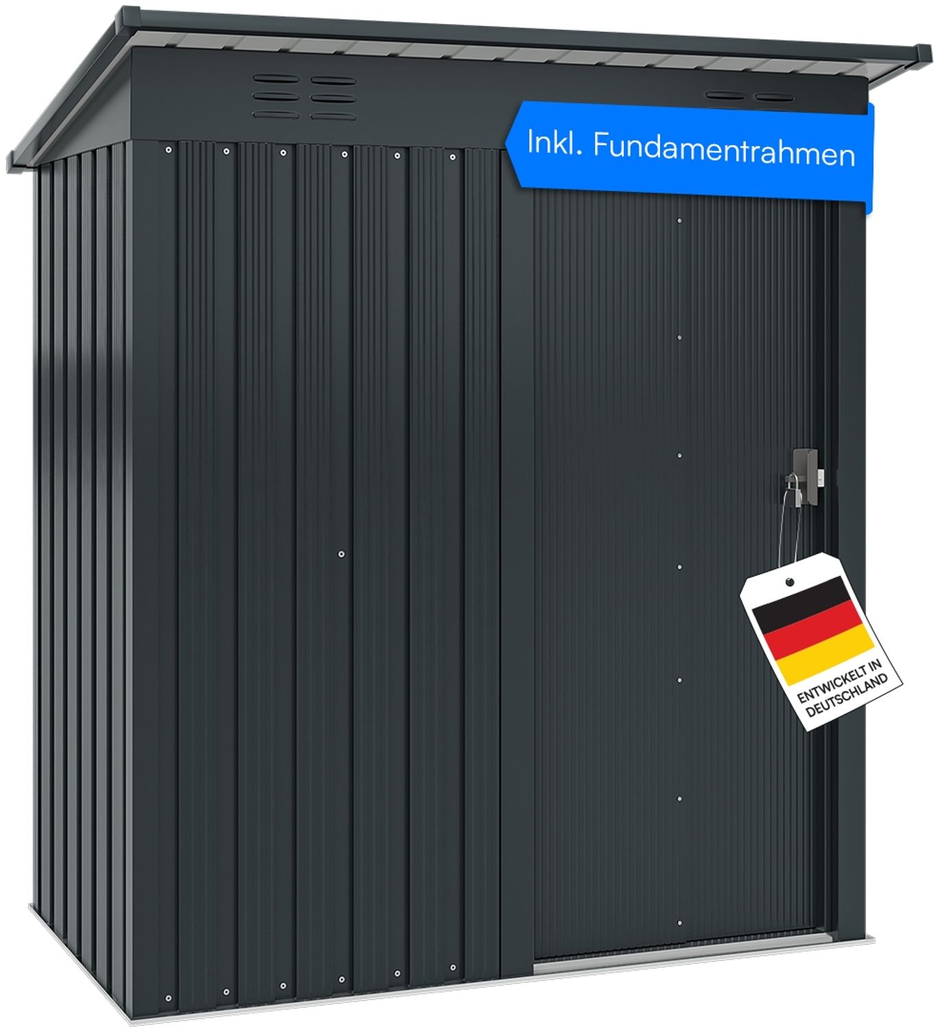 | Name | STEELSØN 'Talonix' Gerätehaus Pultdach mit Schiebetür, Stahl, anthrazit, wetterfest, 164x96x184/160 cm, abschließbar |