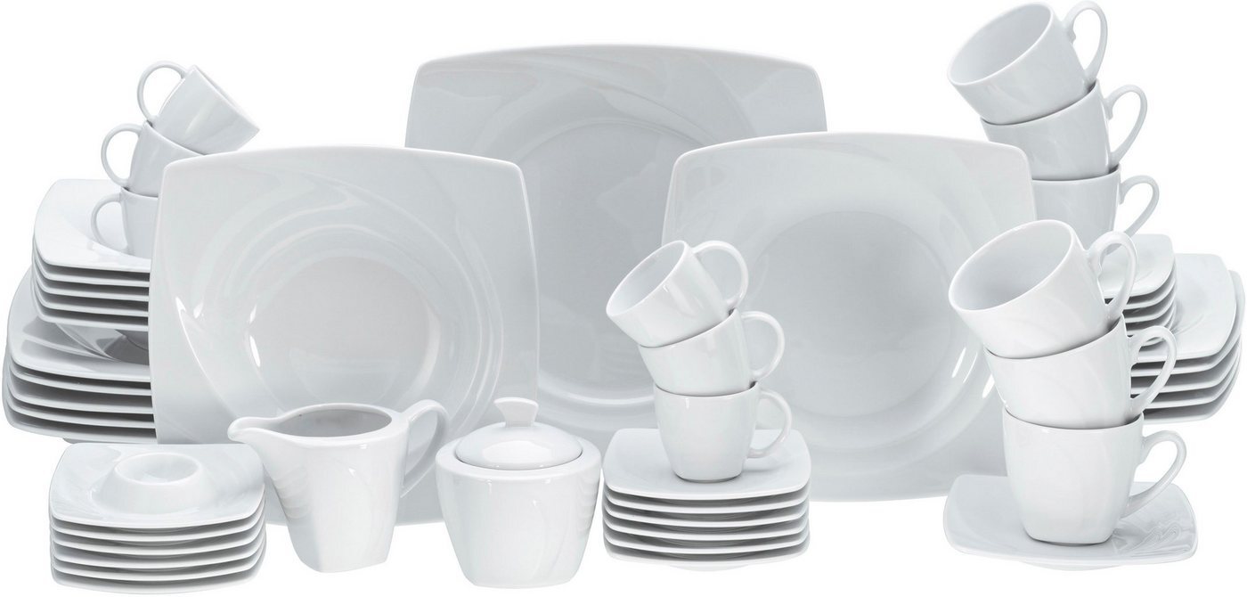 | Name | CreaTable 13136 Kombiservice Celebration für 6 Personen, Porzellan, Quadrat, weiß (1 Set, 50-teilig) |