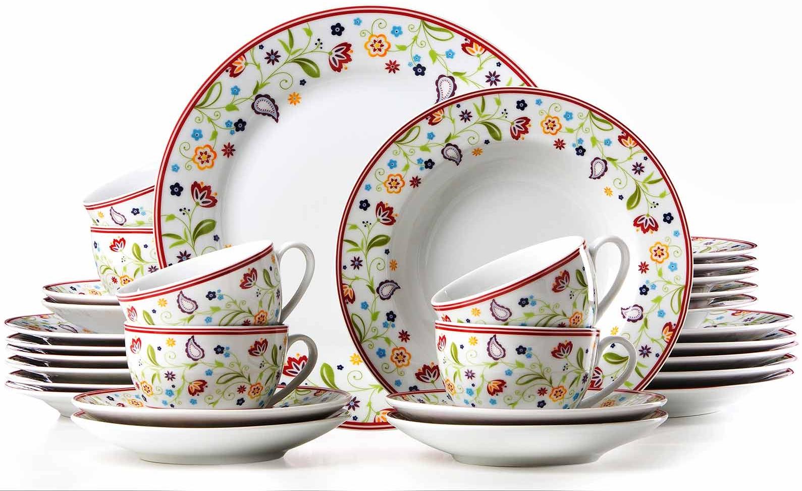 | Set-Bestandteile | 6 flache Teller, 6 Suppenteller, 6 Dessertteller, 6 Kaffeetasse, 6 Kaffeeuntertasse |