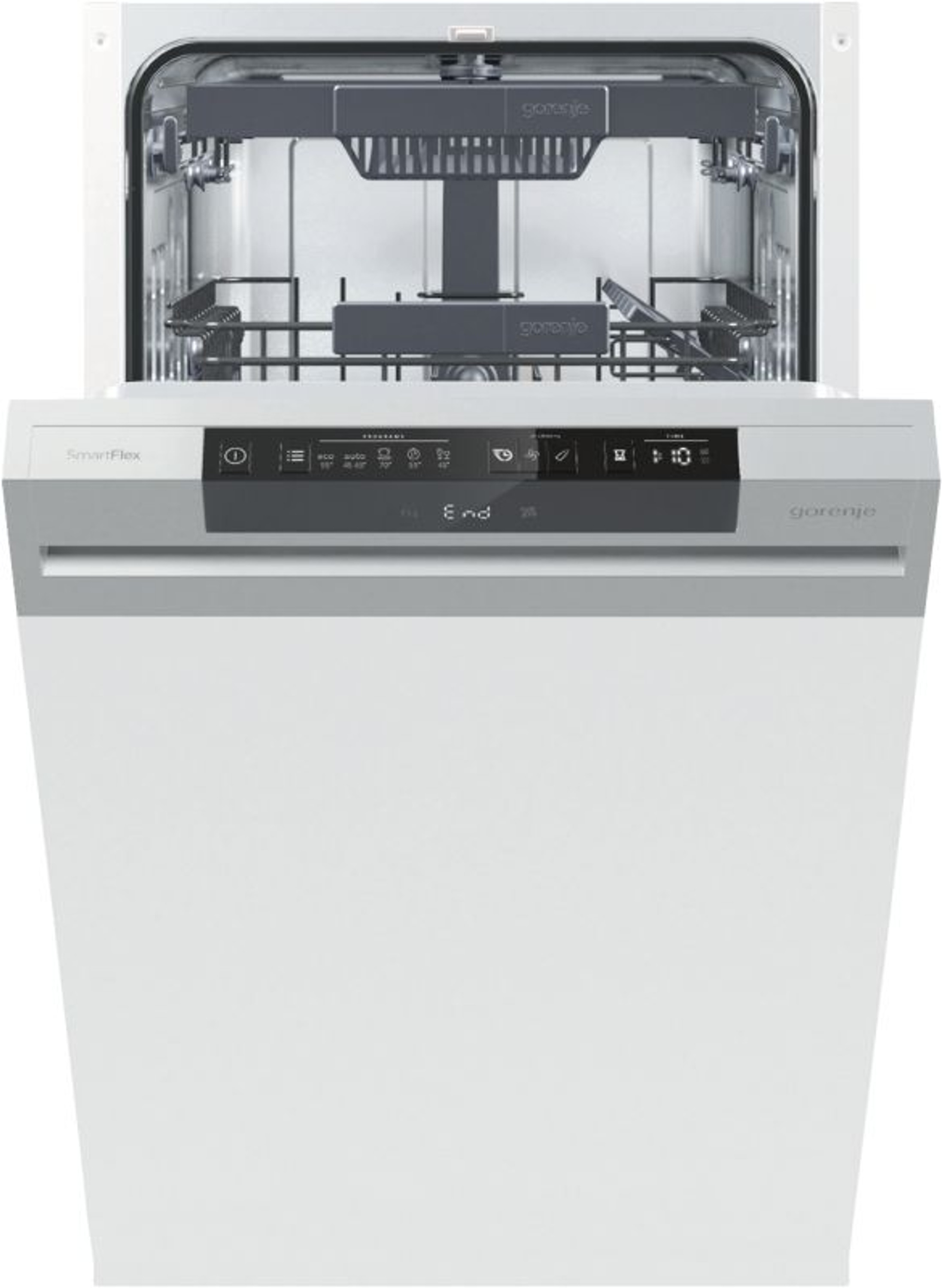 Der Gorenje GI561D10S ist ein Einbaugeschirrspüler mit einer einfach zu bedienenden TouchControl-Oberfläche. Er bietet Platz für bis zu 13 Maßgedecke und passt gut in bestehende Küchen. Die Tasten befinden sich oben auf der Türkante, was eine einfache Bedienung ermöglicht. Zusätzlich wird eine Dampfschutzfolie für die Küchenunterseite mitgeliefert.
