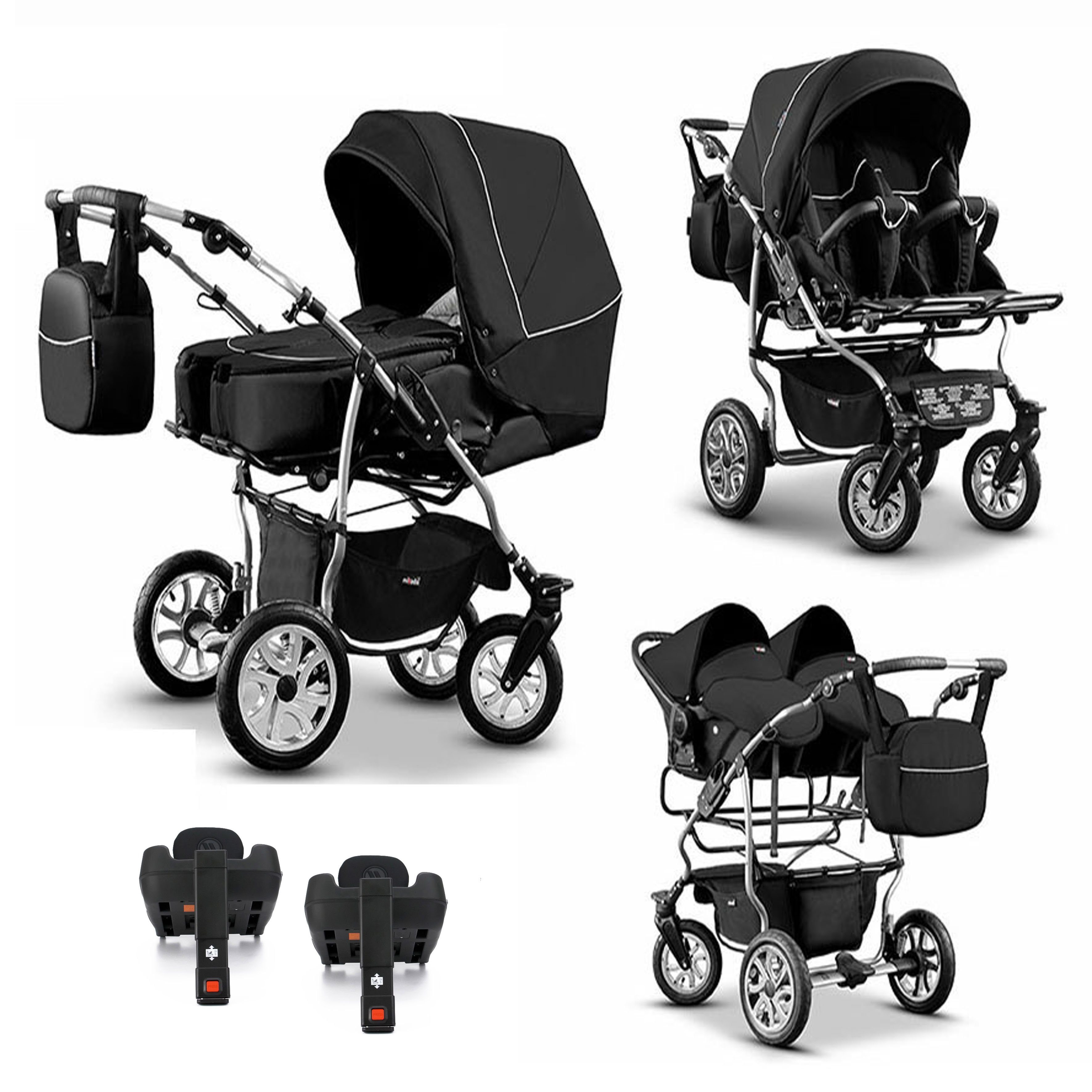 BabyMerc Zwillings-Kombikinderwagen City Twin 5 in 1 inkl. SportsitzeAutositze und Isos in 19 Farbenærnten-Buggy für Geschwister in 19 verschiedenen Farben