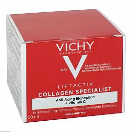 Die Vichy Liftactiv Collagen Specialist Creme Anti-Aging 50 ml ist eine Hautpflege-Creme, die speziell für reife Haut entwickelt wurde. Sie verspricht ein verbessertes Erscheinungsbild der Haut durch das Aufpolstern von Falten und einen straffenden Effekt. Die Formel enthält hochwirksame Inhaltsstoffe wie Peptide und Vitamin Cg, welche die Kollagenproduktion anregen und somit die Elastizität der Haut erhöhen sollen.