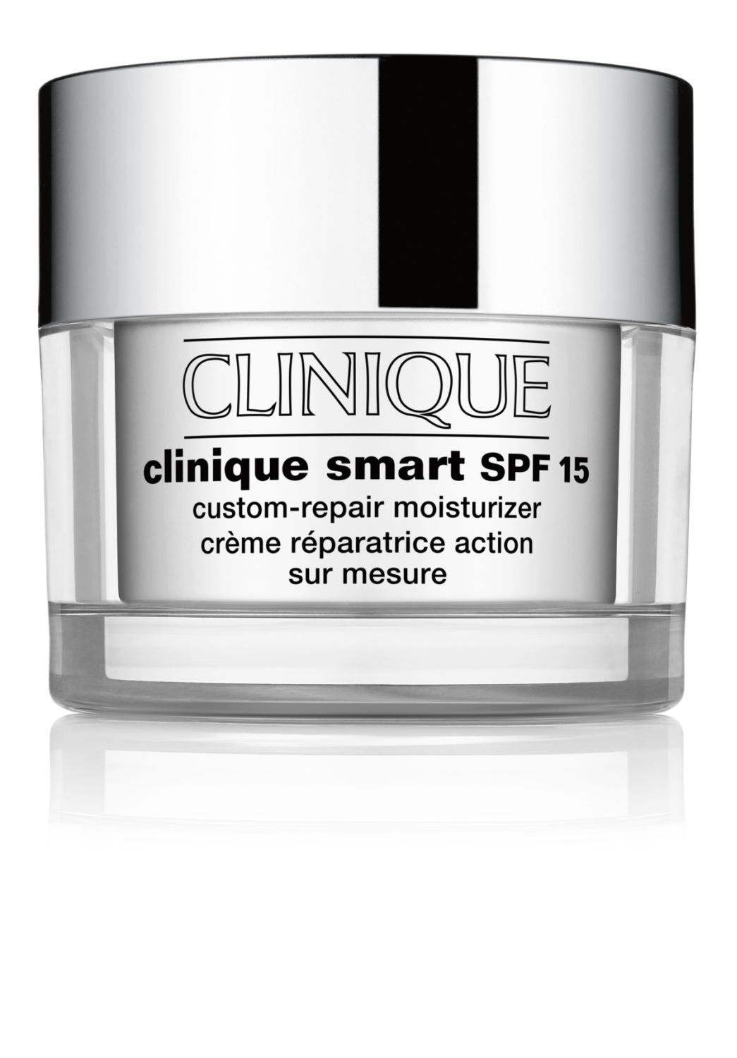 Der Clinique Smart Day SPF 15 Custom-Repair Moisturizer bietet trockener Haut intensive Feuchtigkeit und Schutz vor schädlichen UV-Strahlen mit einem Lichtschutzfaktor von 15. Die leichte Textur wird schnell absorbiert, ohne ein fettiges Gefühl zu hinterlassen. Kunden berichten von strafferer Haut dank der wirksamen Formel des Moisturizers.