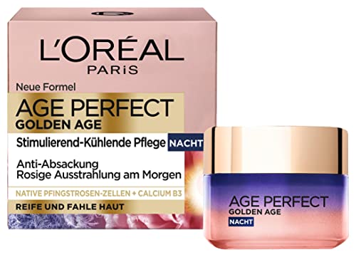 Die L'Oréal Paris Age Perfect Golden Age Nachtpflege bietet eine angenehme kühlende Frische beim Auftragen und sorgt für eine weiche, gut hydratisierte Haut. Sie verbessert das Hautbild und verleiht eine rosige Ausstrahlung, was sie besonders für reifere Haut geeignet macht. Auch jüngere Anwenderinnen berichten von positiven Ergebnissen. Die Creme ist leicht aufzutragen und zieht gut ein, jedoch könnte der Preis für einige Nutzer als hoch empfunden werden.