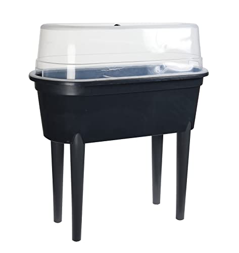 Platzsparendes Hochbeet auf Beinen mit einem abschließbaren Deckel für optimales Pflanzenwachstum.