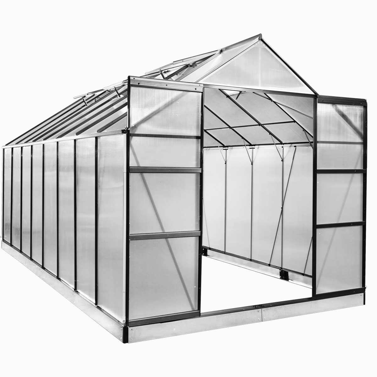 Dieses Alu-Treibhaus eignet sich ideal für Hobbygärtnerinnen und -gärtner sowie professionelle Gärtnerinnen und Gärtner, die Wert auf eine geschützte Umgebung für ihre Pflanzen legen. Dank seiner großzügigen Größe können Sie verschiedene Arten von Gemüse, Blumen oder Kräutern anbauen und somit Ihren eigenen Garten zum Leben erwecken. Durch das rostfreie Aluminium ist das Gewächshaus zudem langlebig und wartungsarm.