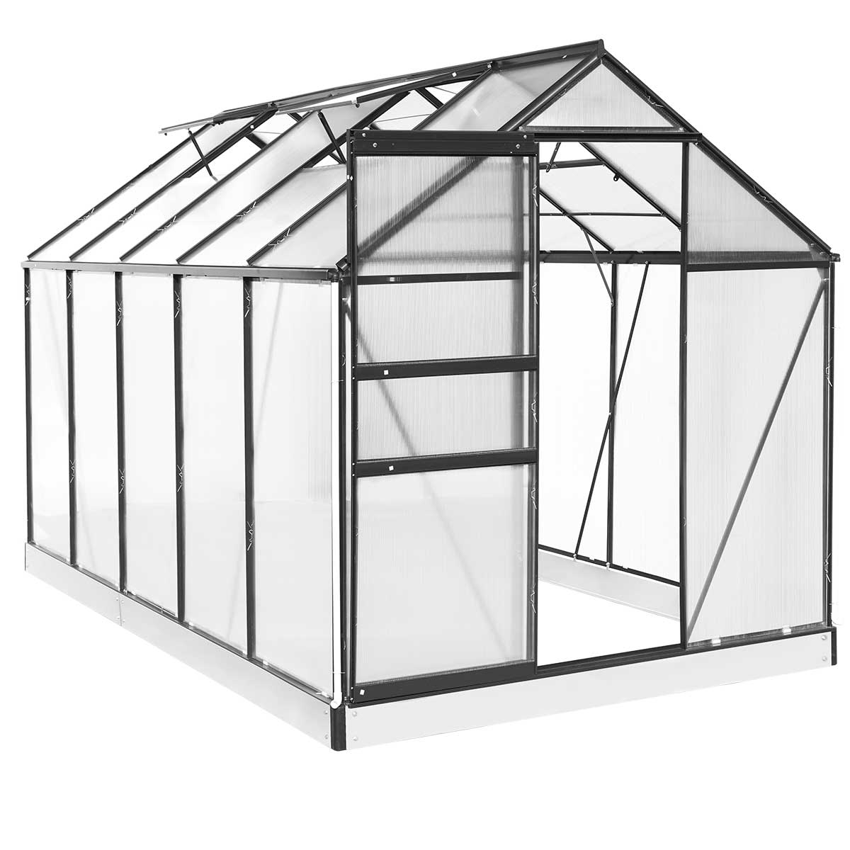 Unser Aluminium-Gewächshaus in der Größe 310x190x195cm bietet Ihnen die ideale Umgebung, um Ihre Pflanzen vor den Elementen zu schützen und ihr Wachstum zu fördern. Dank des rostfreien Fundaments können Sie sicher sein, dass Ihr Gewächshaus stabil und langlebig ist. Das TÜV-geprüfte Alu-Treibhaus mit grauer Lackierung sorgt nicht nur für eine moderne Optik, sondern auch für optimalen Schutz Ihrer Pflanzen.