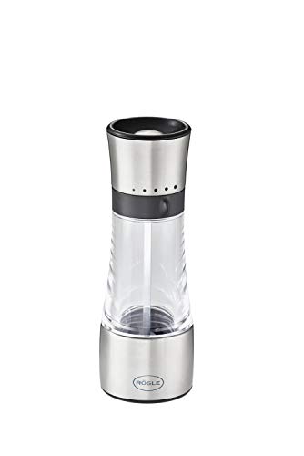 Die Gewürzmühle von RÖSLE bietet eine hervorragende Mahlqualität und ermöglicht es, verschiedene Mahlgrade einzustellen. Das Befüllen und Verschließen der Mühle ist einfach und praktisch gestaltet. Durch die umgedrehte Position entstehen keine lästigen Krümel beim Abstellen der Mühle, was für eine saubere Arbeitsfläche sorgt. Zudem liegt die Mühle gut in der Hand dank ihres angenehmen Designs und ihrer passenden Größe.