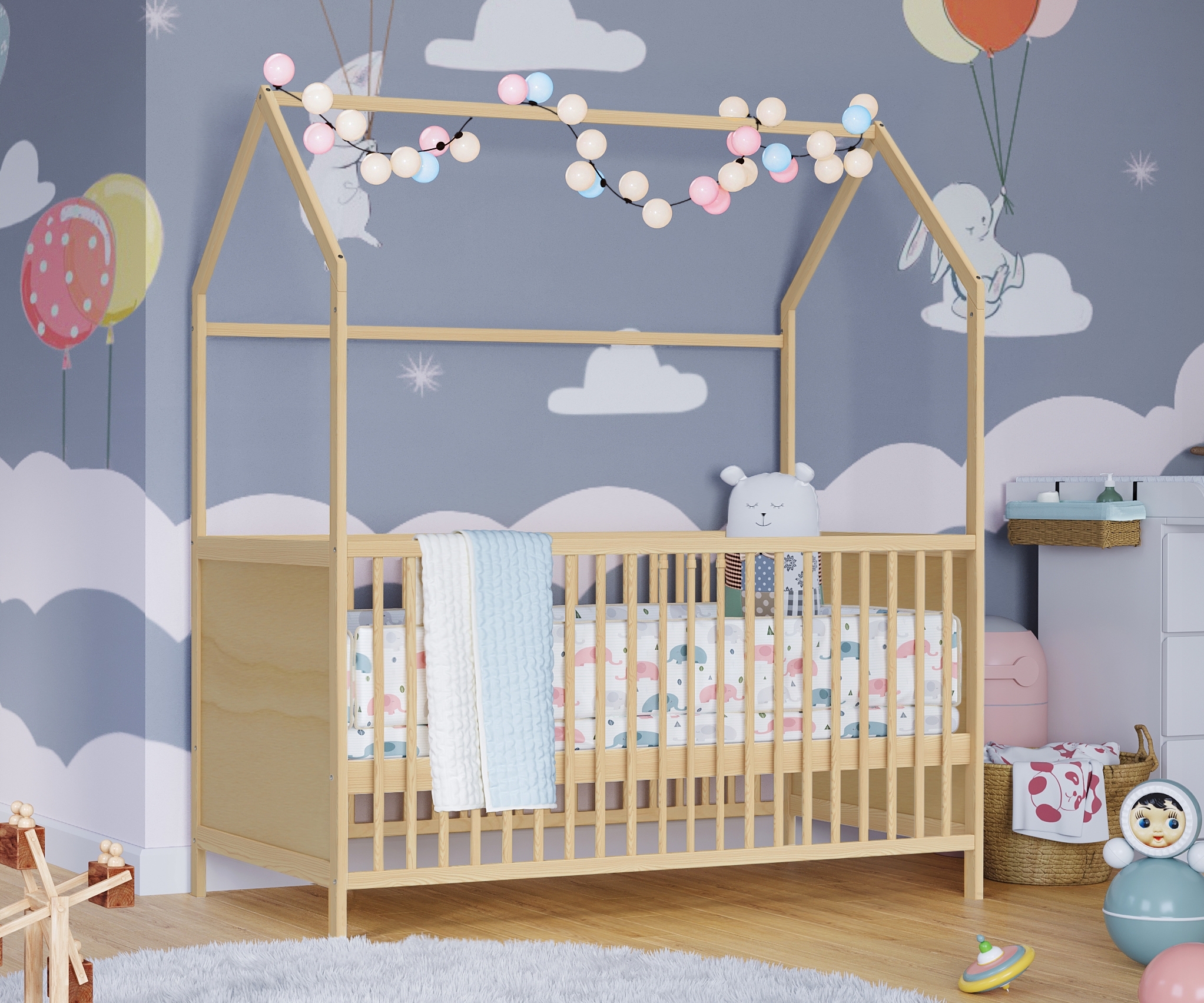 Mit 'Nika' bietet Bellabino ein modernes Babybett, das durch das ausgefallene Design jedes Kinderzimmer mit Stil und Geschmack bereichert. Das Bettchen in der Form eines gemütlichen Hauses zeichnet sich durch die skandinavische Optik aus und lässt sich mit diversen Einrichtungsstilen problemlos kombinieren. 'Nika' ist aus robuster Massivkiefer gefertigt, die dem Hausbett eine maximale Belastbarkeit von 50 kg garantiert. Die geräumige Liegefläche von 70x140 cm sorgt zudem für eine gemütliche Ruheoase und verspricht Ihrem Baby viele erholsame Nächte. Das Bettgitter, das die Liegefläche schützt, ist mit 3 Schlupfsprossen ausgestattet. Einmal die Sprossen entfernt, kann Ihr Kind selbständig aus dem Bett heraus- und hereinkrabbeln. Der Bettausstattung legt Bellabino zudem einen höhenverstellbaren Lattenrost bei, mit welchem die Betthöhe von 42,5 cm auf 29,5 cm und auf 14,0 cm angepasst werden kann: So müssen Sie sich nicht tief bücken, um Ihr Baby aus seinem Bettchen zu holen. Sobald Ihr Baby aus dem Bettchen herausgewachsen ist, können Sie einen Gitterrahmen abnehmen und 'Nika' in ein schönes Junior-Tagesbett oder in ein ausgefallenes Kindersofa verwandeln. **Produktdetails:** - Maße: H 158 cm, T 75 cm, B 145 cm - Höhenverstellung des Lattenrostes: 14,0 cm, 29,5 cm, 42,5 cm - Liegefläche: 70x140 cm - Material: Massivholz (Kiefer) und Seitenteile aus Sperrholz - Max. Belastbarkeit: 50 kg - Lieferumfang: Hausbett inkl. 3 Schlupfsprossen und Lattenrost - Umbaubar in Junior Tagesbett - Einfache und schnelle Montage