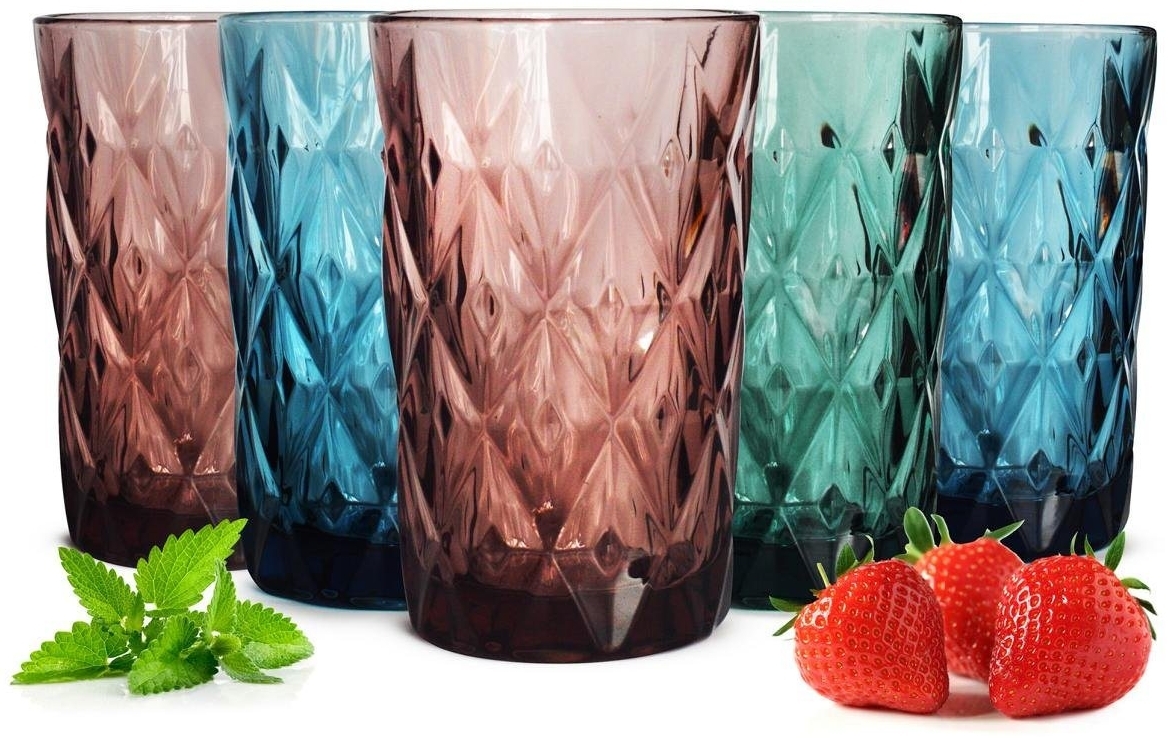 | Name | 6 Bunte Trinkgläser 350ml Wassergläser Saftgläser Longdrinkgläser Cocktailgläser |