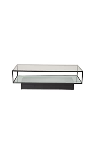 Livetastic Couchtisch Schwarz, rechteckig aus Metall und Glas, 130x60x37.5 cm mit Stauraum