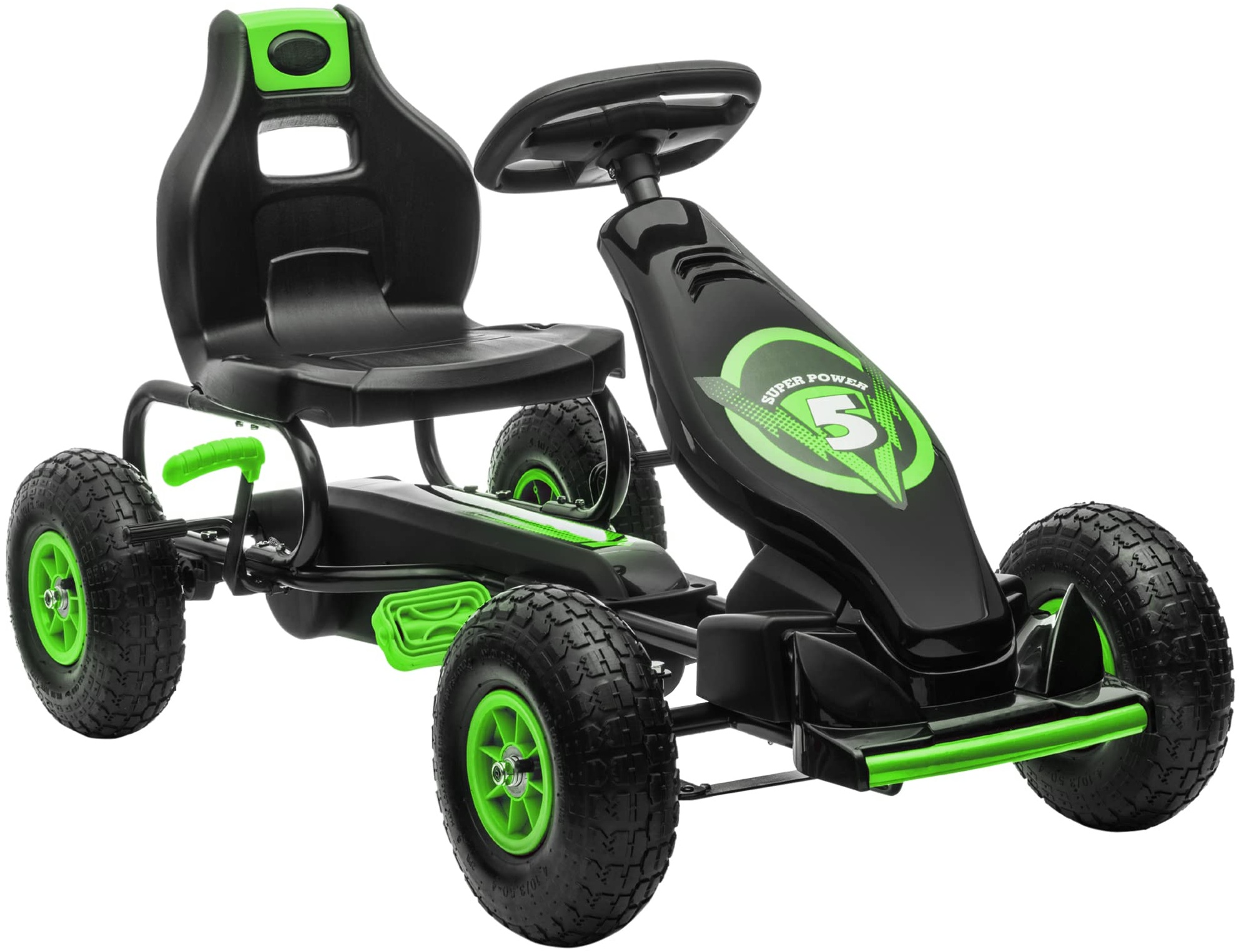 | Name | HOMCOM Gokart, Kinderfahrzeug mit verstellbarem Sitz, Tretauto mit Gummireifen, Pedal und Handbremse, Kettcar für Kinder ab 5 Jahren, Outdoor, Grün+Schwarz |