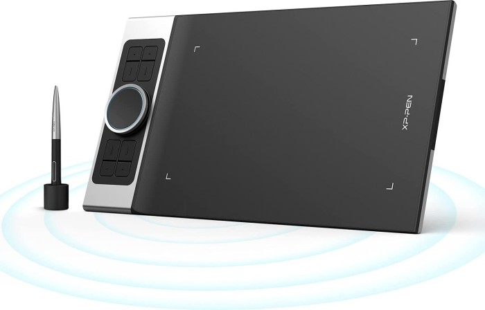 | Lieferumfang | 1 x Tablett, 1 x Batteriefreier Stift, 1 x Stifthalterung, 8 x Ersatz-Stift-Nibs, 1x USB-C auf USB Adapter, 1x USB auf USB-C Adapter, 1x USB auf Micro USB Adapter, 1 x Schwarz Zeichnung Handschuh, 1 x Kurzanleitung |