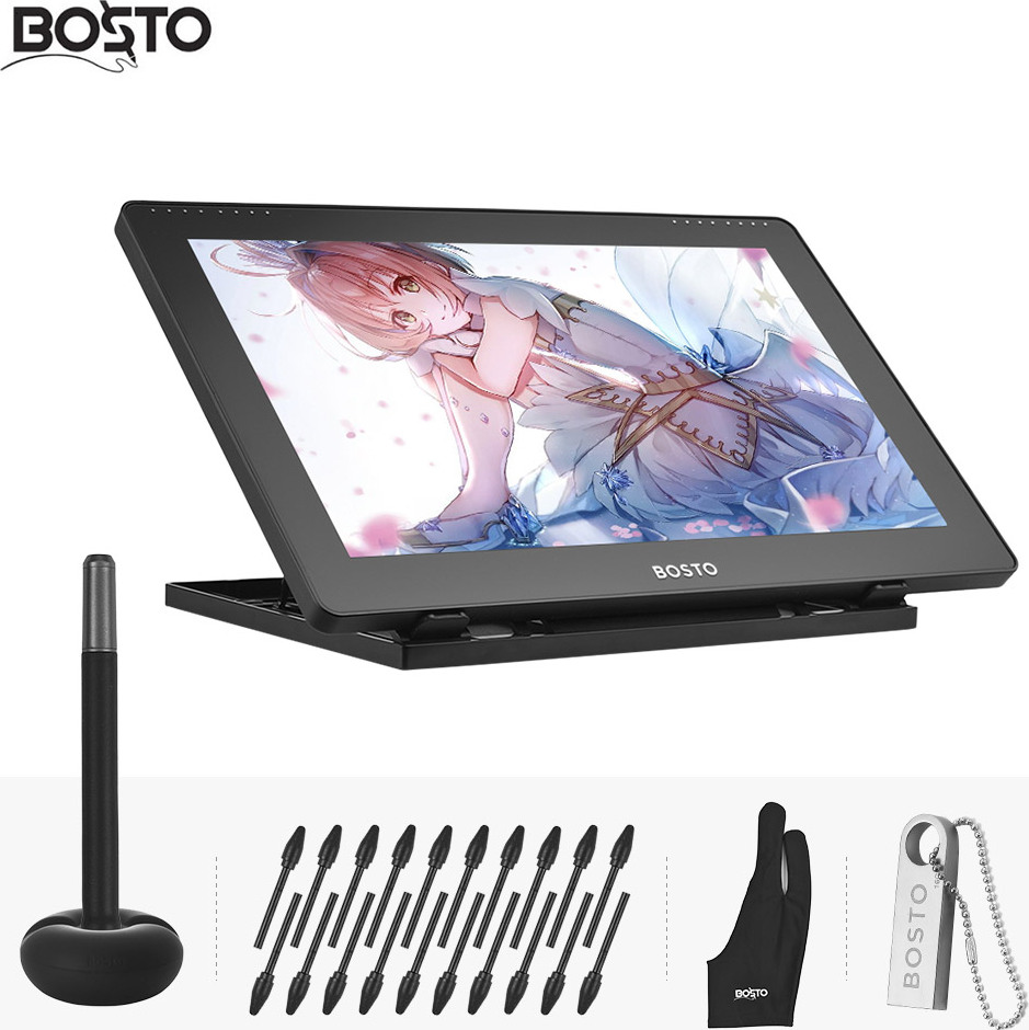 • Das BOSTO 16HD Grafiktablett bietet eine große aktive Zeichenfläche von 15,6 Zoll mit hoher Auflösung und 16,7 Millionen Farben