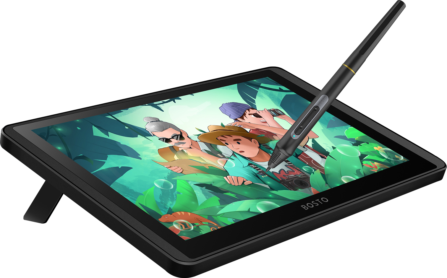 • Das BOSTO 12HD-A LCD-Grafiktablett-Monitor bietet einen 11,6-Zoll-HD-IPS-Bildschirm mit lebendigen Farben und einem aktiven Bereich von 258 x 145 mm