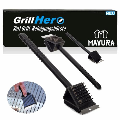 • Die GrillHero 3-in-1-Grillreinigungsbürste von MAVURA ist ein vielseitiges Reinigungswerkzeug für Grill und Rost