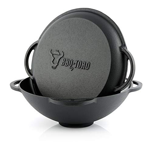 • Der BBQ-Toro Gusseisen Kazan mit Deckel ist ein schwerer, traditioneller, gusseiserner Topf und ein exakt passender Deckel mit dem man überall kochen, braten, schmoren, frittieren, dünsten und backen kann