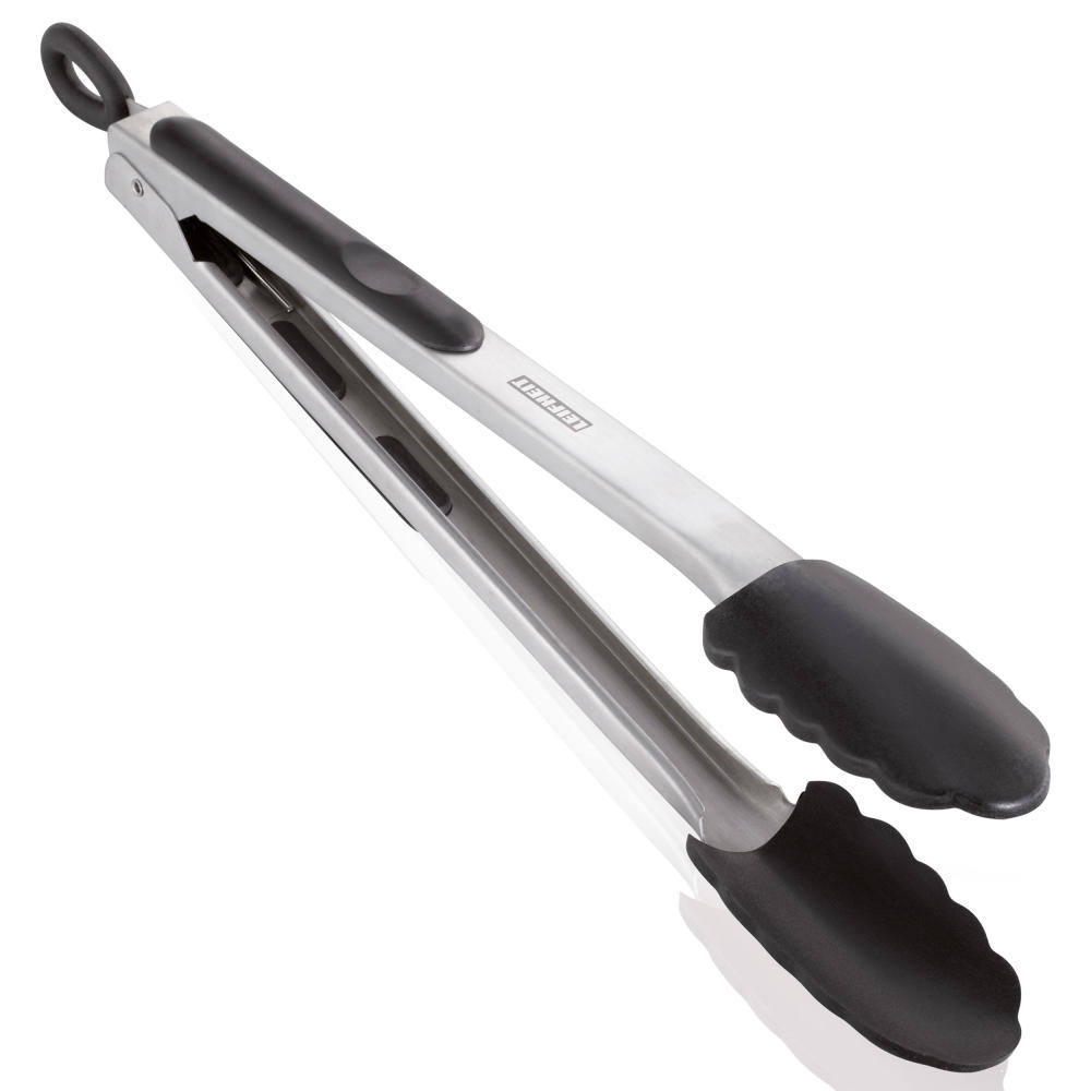 Die Leifheit Grillzange bietet eine praktische Hilfe beim Grillen. Sie lässt sich arretieren und verfügt über abgerundete Griffe, die ein Einklemmen der Handballen verhindern. Auch nach mehreren Spülgängen bleibt sie in gutem Zustand.